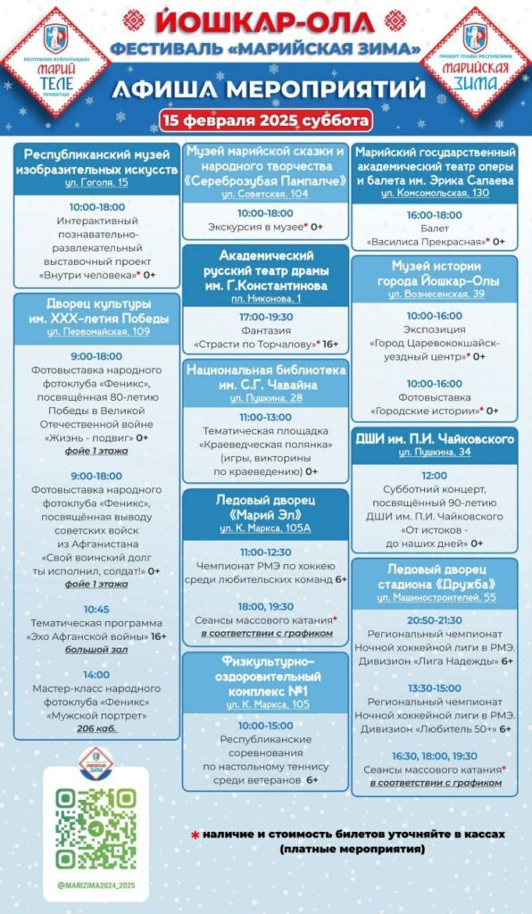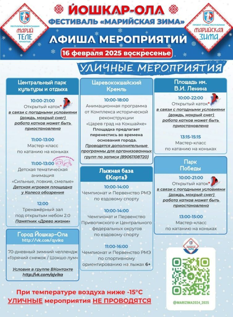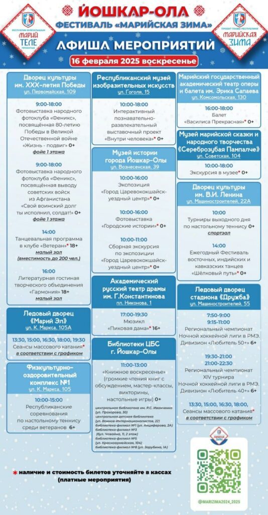 Мэрия Йошкар-Олы опубликовала актуальную афишу фестиваля «Марийская зима».