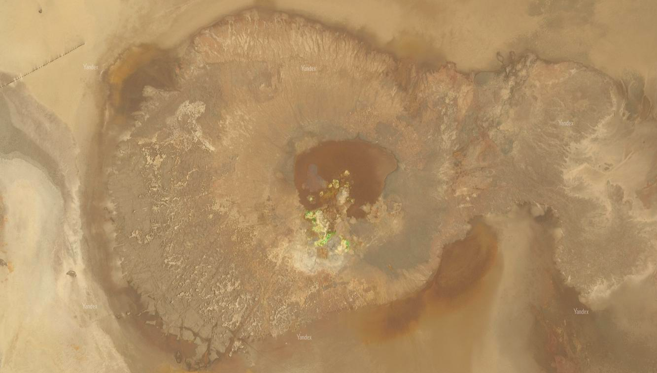 Речь идет о геотермальном поле Даллол в Эфиопии. Оно расположено во впадине Данакиль, которая простирается над вулканическим кратером, насыщенным солью.