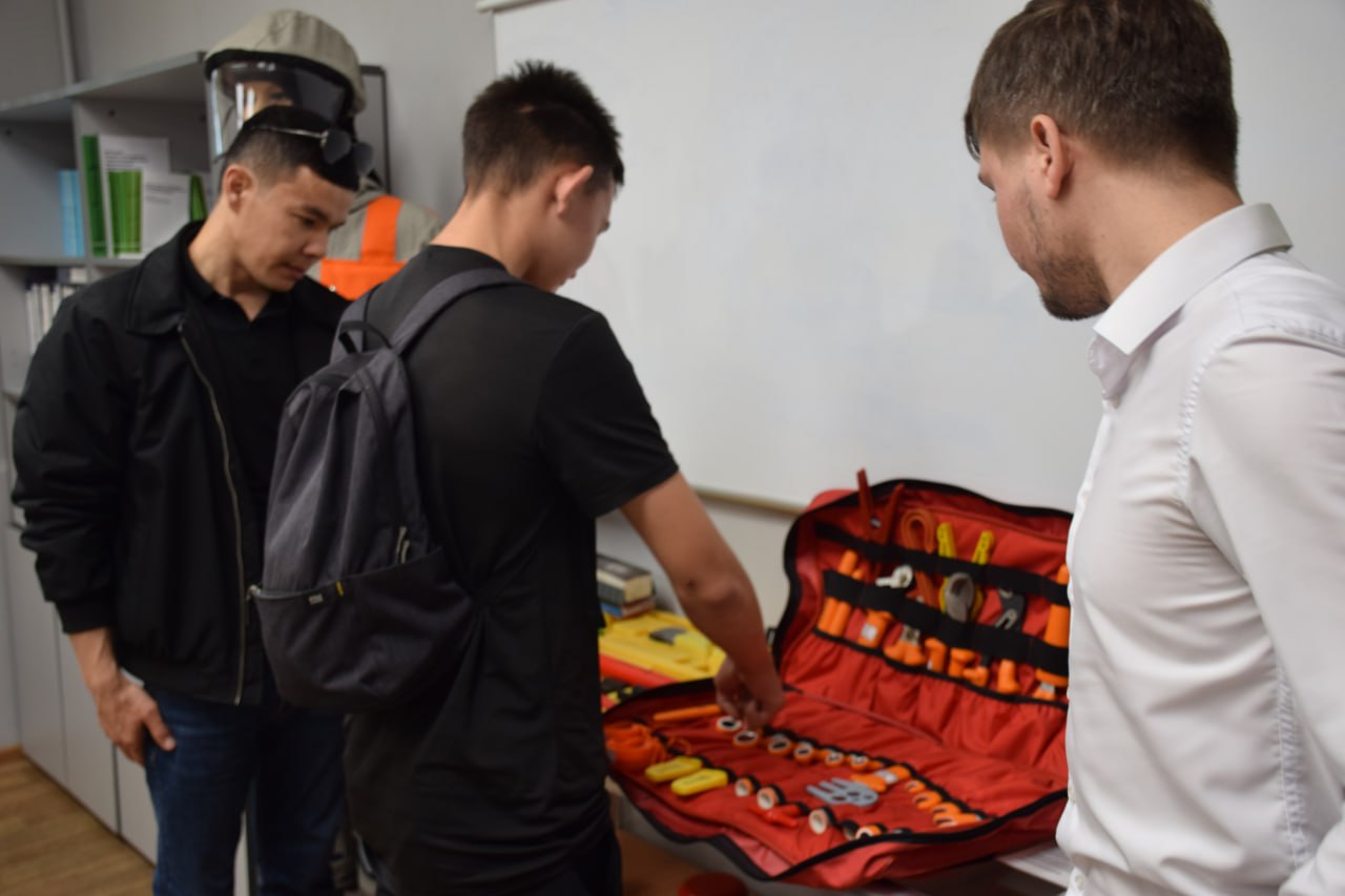 В рамках встречи студенты увидели современный кабинет охраны труда с новейшим защитным снаряжением и рабочим инструментом энергетиков, а также посетили высокотехнологичный полигон в РЭС, где они ознакомились с порядком работ на высоте.