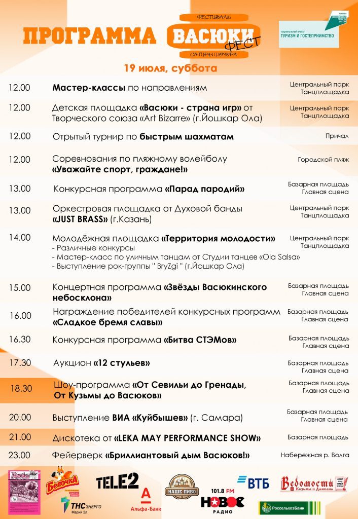 В 20 часов начнется развлекательная викторина «ТУЦ ТУЦ Quitz». Основные мероприятия пройдут в субботу 19 июля.