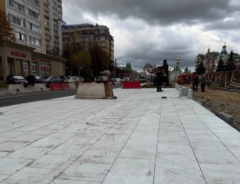 По словам врио мэра Йошкар-Олы, на этом участке покрытие будет под стать историческому центру столицы. Каждая гранитная плита весит около 25 – 30 кг, поэтому тротуары будут долговечными. Кроме того, здесь установят скамейки, а весной в вазонах высадят цветы.