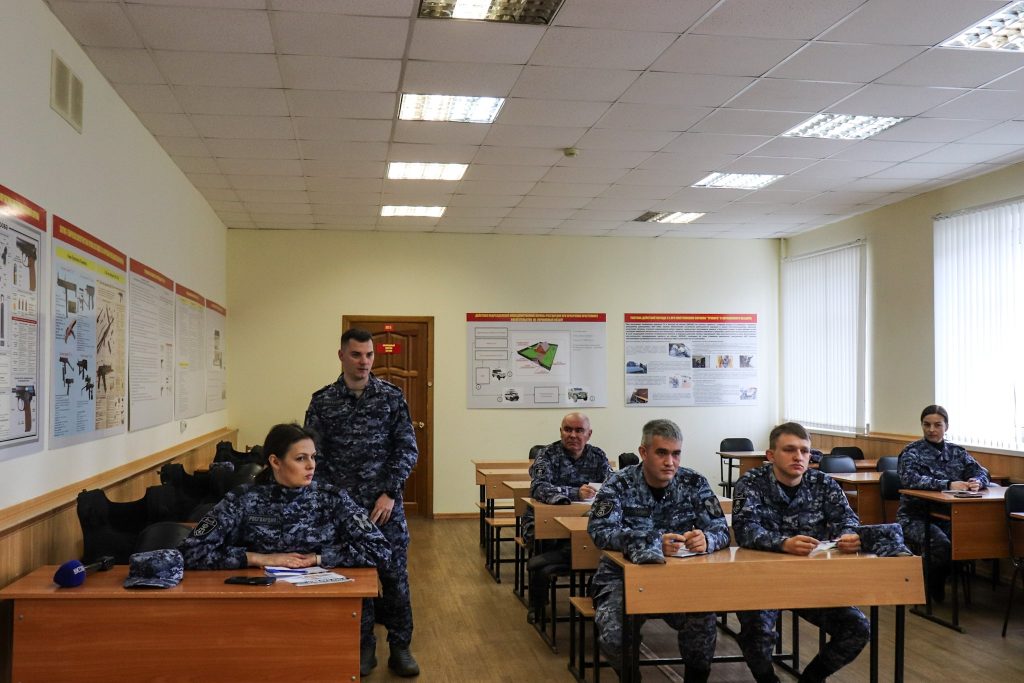 Серым осенним утром я уже стоял у ворот КПП отдела вневедомственной охраны, ожидая коллег по цеху и сопровождающего, который пропустит нас на территорию Управления. Пока ожидал, присоединились сотрудник пресс-службы и другие приглашенные журналисты. Разговорились, узнали поподробнее о планах, а потом нас провели в помещение и проводили до учебного класса, откуда начинается рабочий день каждого сотрудника отдела вневедомственной охраны.