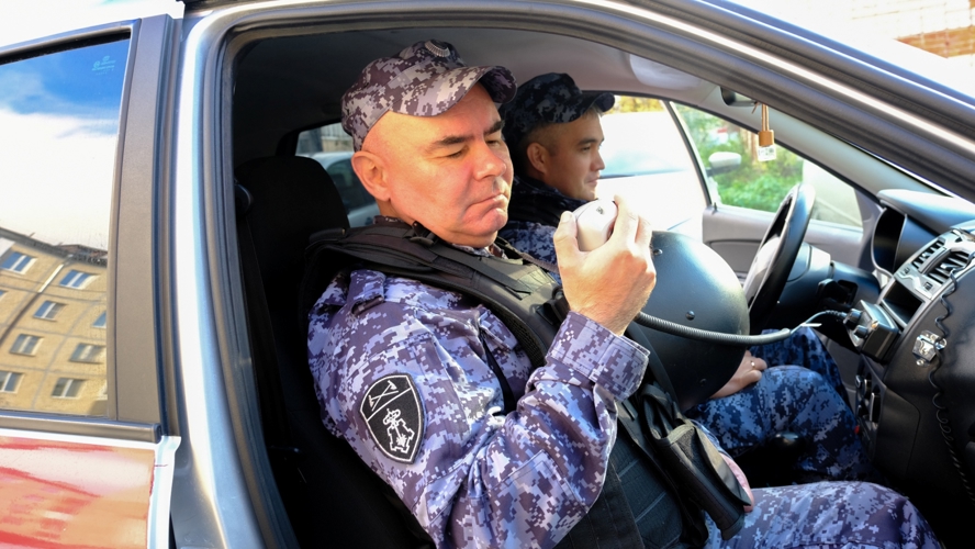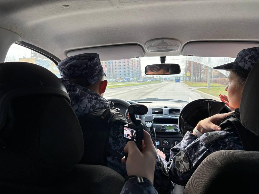 Ознакомившись с «мозгом» сети вневедомственной охраны, по-армейски построившись и получив последние указания, мы были разделены на два экипажа и отправились с действующими сотрудниками на маршруты патрулирования. Во время поездки на запросы по рациям и позывным отвечали не действующие силовики, а исключительно сотрудники СМИ, чтобы полностью погрузиться в службу.