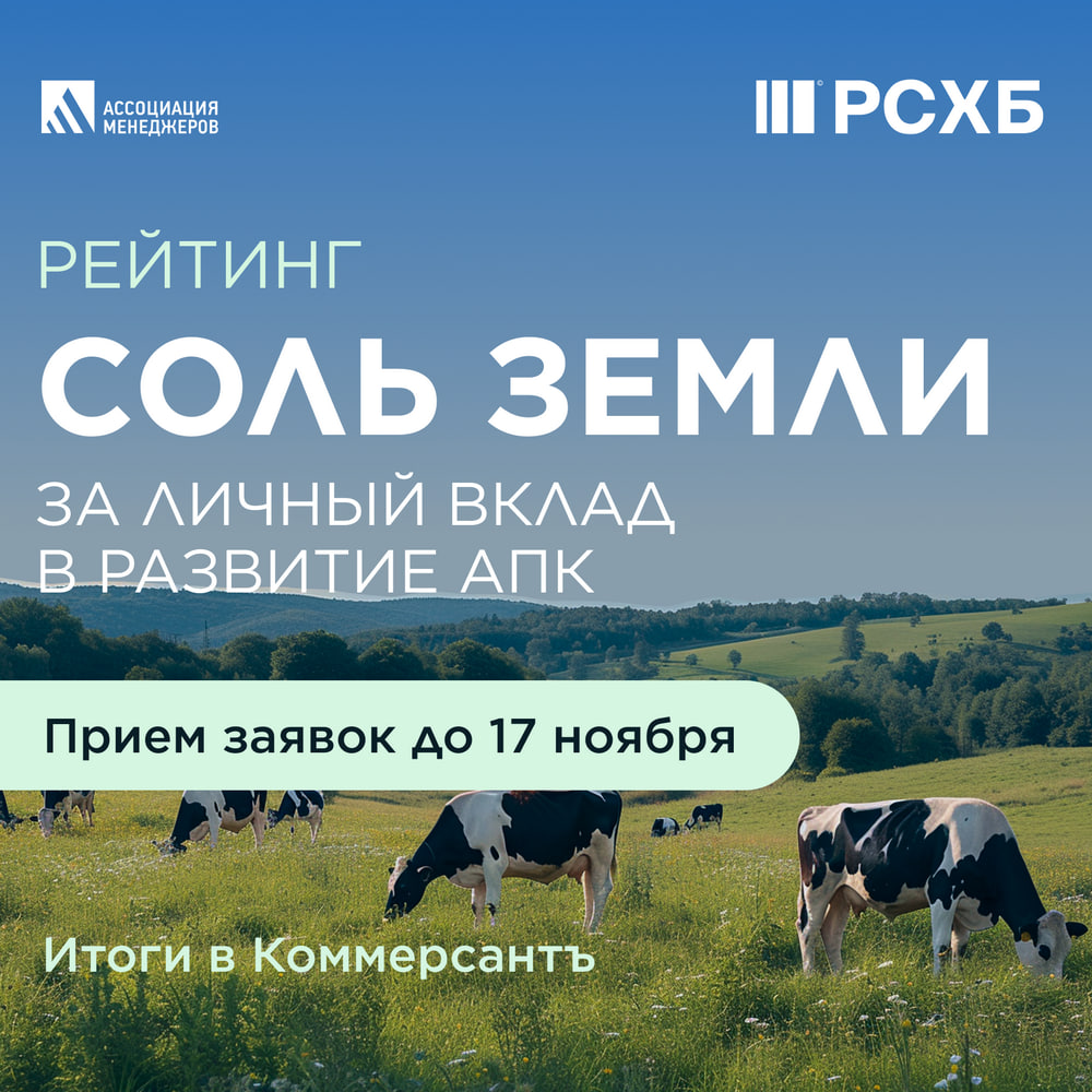 Менеджеры компаний агропромышленного комплекса выбирают лучших представителей по 13 категориям в главном отраслевом рейтинге страны «Соль земли». Приём заявок ведётся до 17 ноября.