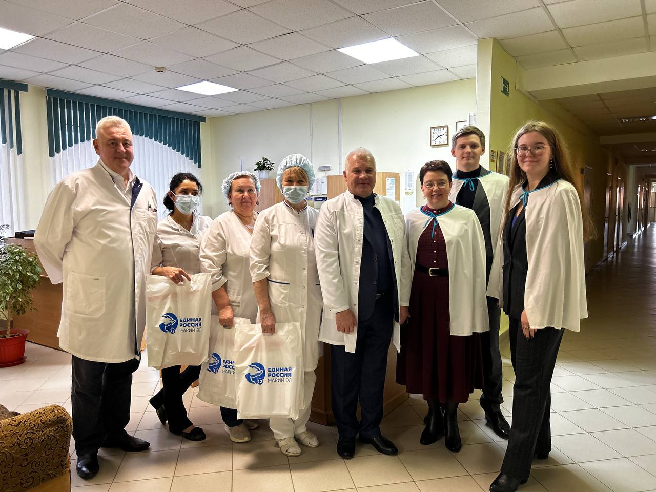 Первые подарки для юных пациентов Детской республиканской клинической больницы передали сенатор РФ Сергей Мартынов, заместитель министерства здравоохранения Республики Марий Эл Татьяна Бастракова, руководитель Регионального исполнительного комитета партии «Единая Россия» Матвей Галяутдинов, депутат Государственного Собрания Марий Эл Мария Дорогова.