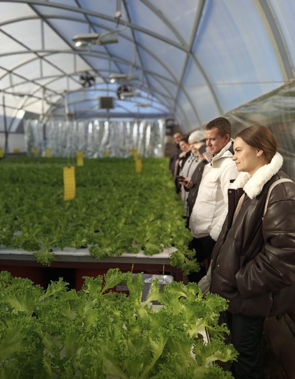 Начинающие фермеры также посетили тепличное хозяйство «Сан-Мари», которое занимается производством свежей зелени. Сергей Мелентьев, руководитель предприятия, рассказал об основных моментах технологии выращивания салатов в теплицах и рынках сбыта, а также о трудностях,связанных с организацией такого производства. Свежая зелень круглый год поставляется в кафе и рестораны города, а также населению по заявкам. Продегустировав продукцию, производимую в «Сан-Мари», ученики Школы фермера отметили большой ассортимент и отличный вкус.