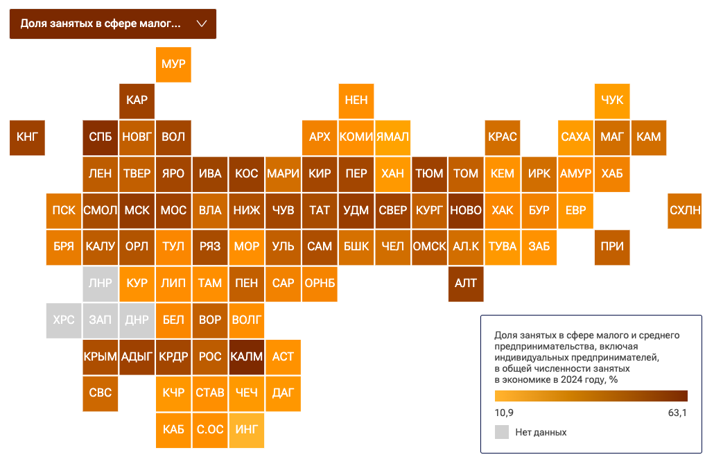 Республика Марий Эл заняла 43 место в рейтинге РИА Новости среди регионов России по занятости населения в малом и среднем бизнесе.