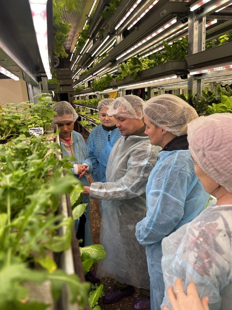 Также растениеводы побывали на инновационном предприятии по выращиванию зелени – сити-ферме «Эко-Агро». Это компания, которая выращивает салат и зелень с использованием передовых технологий. Прецизионное управление климатом, система замкнутого водоснабжения, вертикальная организация пространства – вся эта роботизированная система впечатлила слушателей.