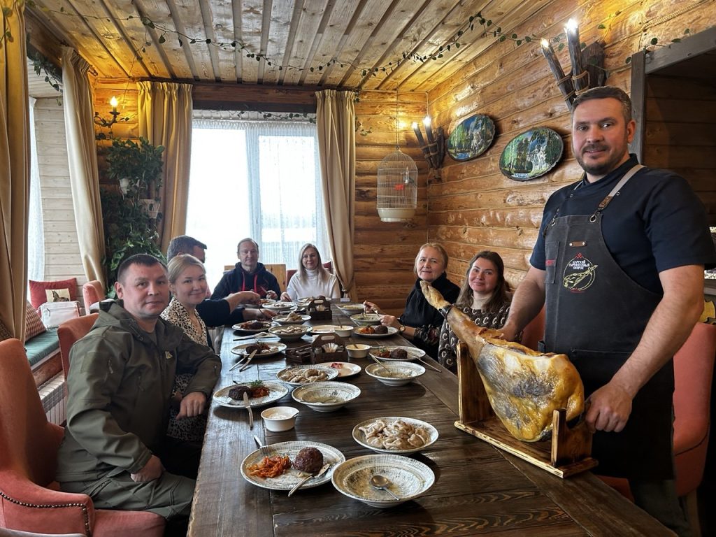 Также для слушателей проекта состоялось выездное практическое занятие по гастротуризму в трактир родной кухни «Теплая речка». Здесь агротуристы познакомились с особенностями национальной кухни, а также научились готовить марийские подкоголи- ресторатор и владелец трактира Иван Антропов сам лично провел мастер–класс по приготовлению марийского блюда, а также угостил гостей своим фирменным Царевококшайским окороком. Ресторатор с удовольствием поделился полезной и нужной информацией относительно особенностей агро и гастротуризма, ответил на многочисленные вопросы слушателей и пожелал им успехов в бизнесе.