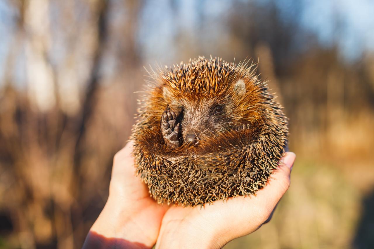 - Не брать ежа на руки. Даже плотные перчатки не гарантируют защиты от укусов и царапин.