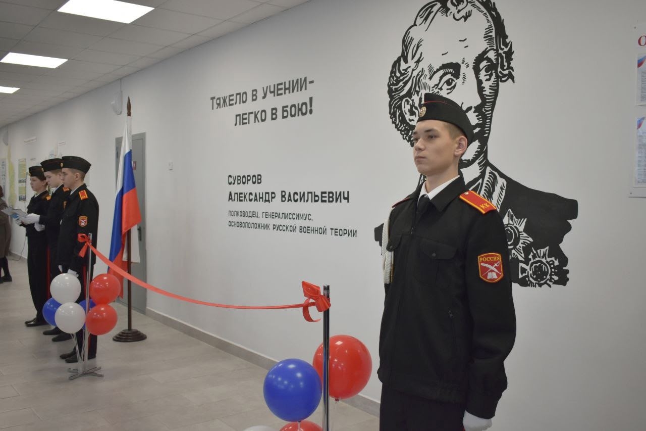 В результате кропотливой работы на стене школы появилось изображение Александра Суворова и его знаменитое выражение «Тяжело в учении – легко в бою!», которое теперь станет девизом для всех учащихся.