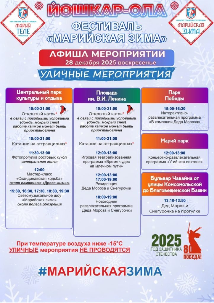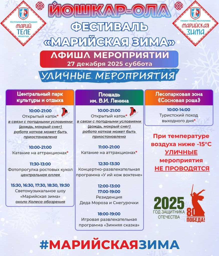 В мэрии Йошкар-Олы опубликовали афишу фестиваля «Марийская зима» на предстоящие выходные.
