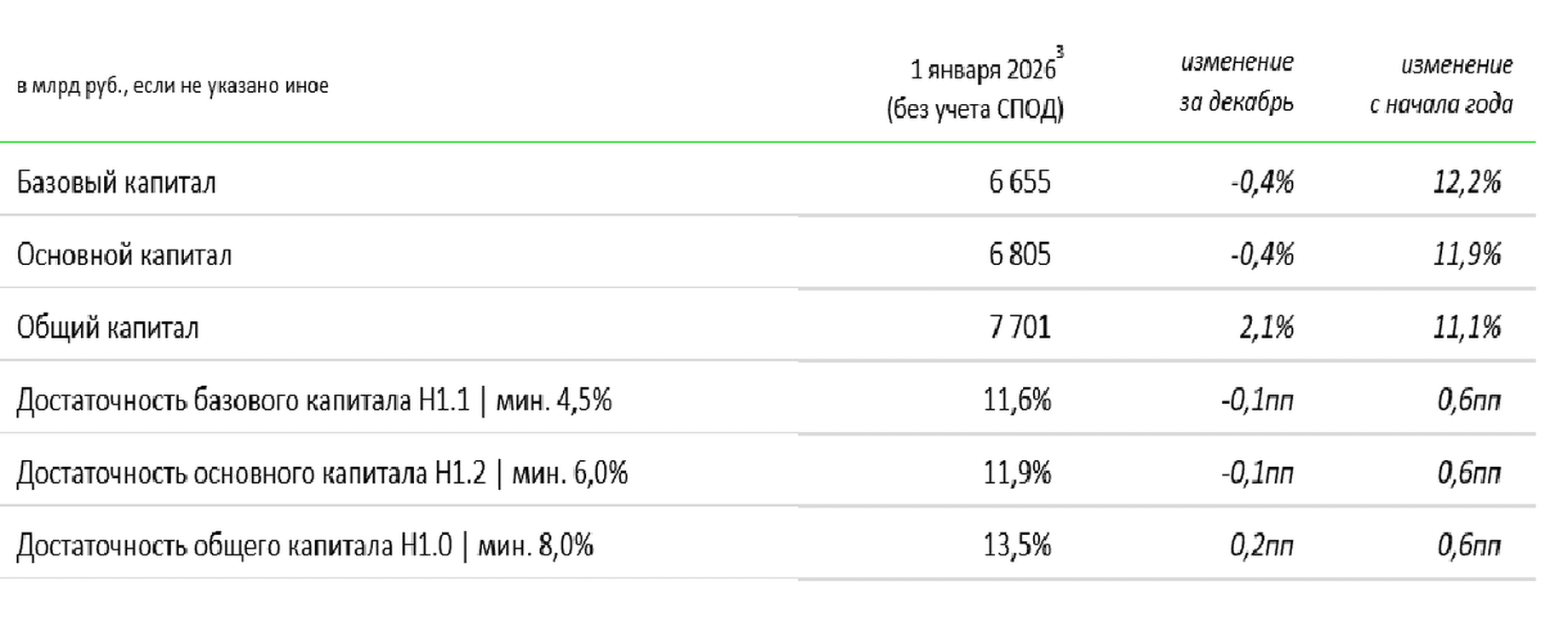 Расчет нормативов базового и основного капитала не учитывает прибыль за октябрь-декабрь 2025 года до проведения аудита. Расчетное влияние проаудированной прибыли за 3 месяца на нормативы составляет порядка 0,8 пп.