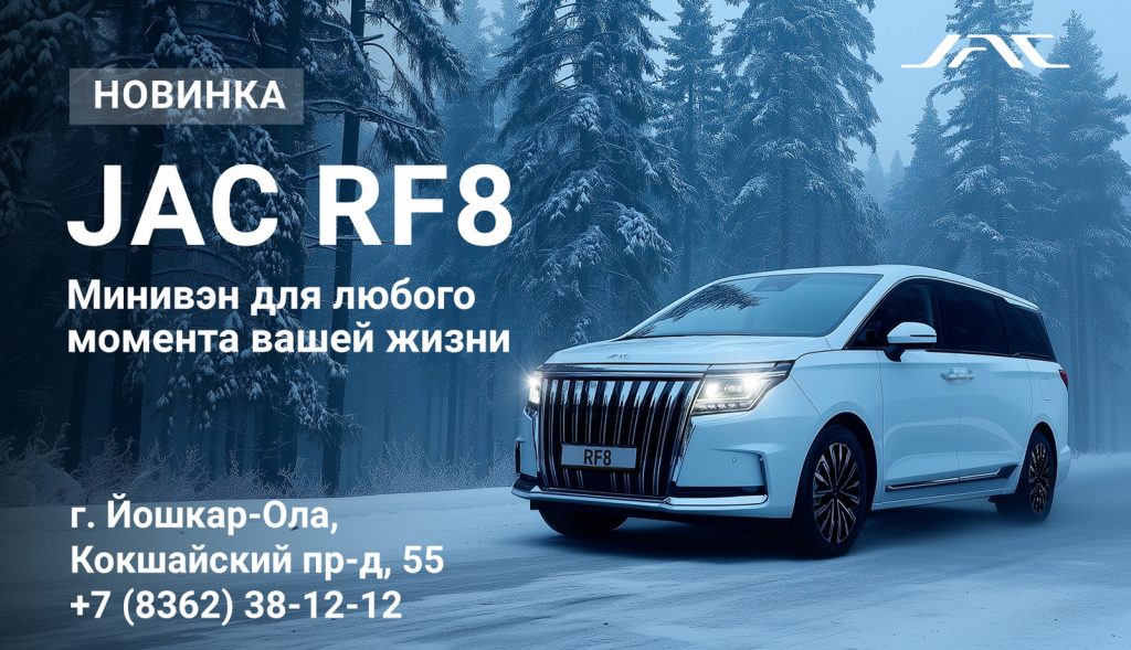 В дилерском центре JAC «Рейн Моторс» в Йошкар-Оле доступен новый минивэн JAC RF8 — современный автомобиль не только для семейных поездок и комфортных дальних путешествий, но и для бизнеса.