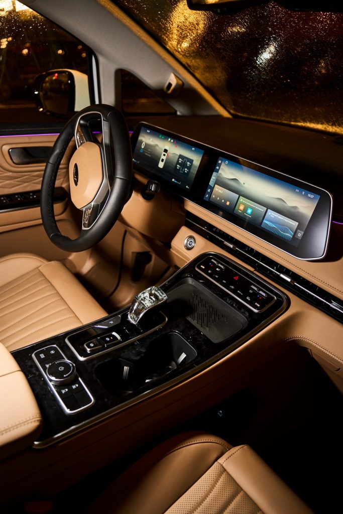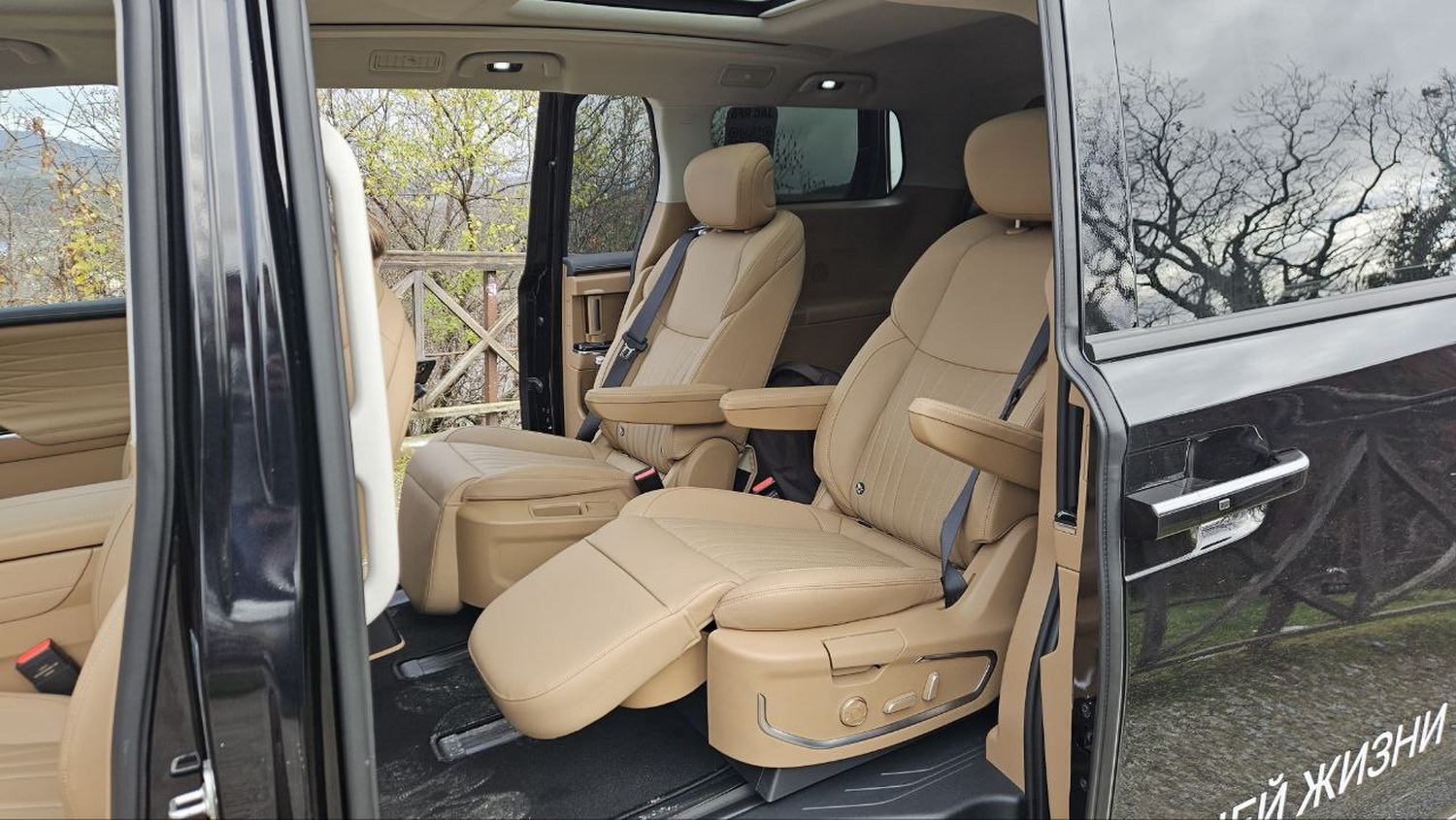 Для комфорта пассажиров предусмотрены электропривод боковых дверей с защитой от защемления, трёхзонный климат-контроль с ионизацией воздуха, панорамный люк, а также сиденья с функциями подогрева, вентиляции и массажа. Мультимедийная система и акустика с 12 динамиками с высоким уровнем воспроизведения звука.