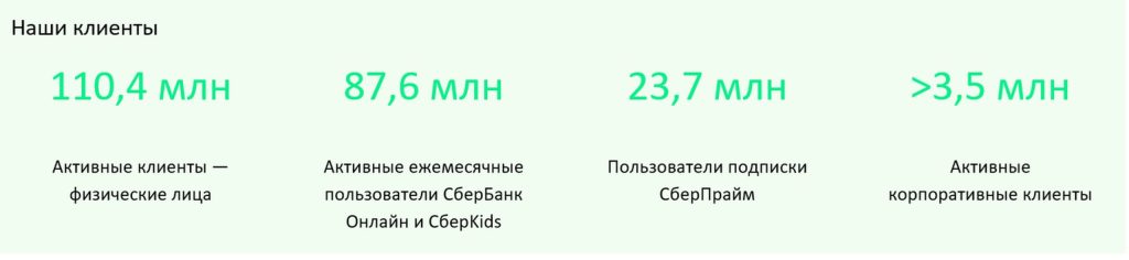 Количество розничных клиентов составило 110,4 млн человек. Число активных корпоративных клиентов превышает 3,5 млн компаний.