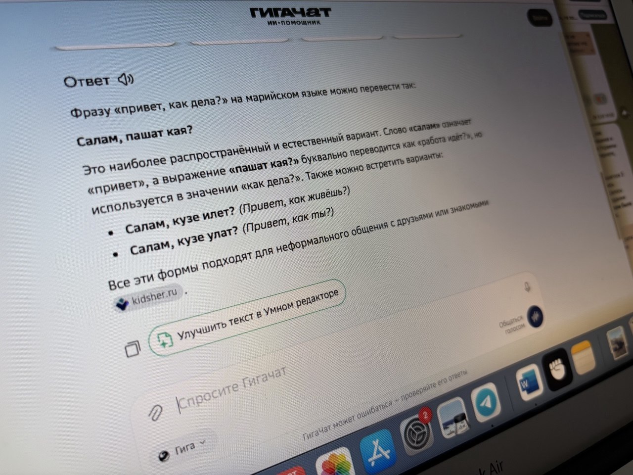Впрочем, общаться с «ГигаЧатом» можно и на горномарийском языке, так как нейросеть понимает и его, но хуже, чем луговомарийский. Это объясняется тем, что данных, на которых обучается ИИ, пока недостаточно.