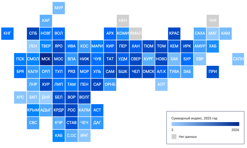 Суммарный индекс республики составил 28 баллов. Среднее значение составило 9,3.
