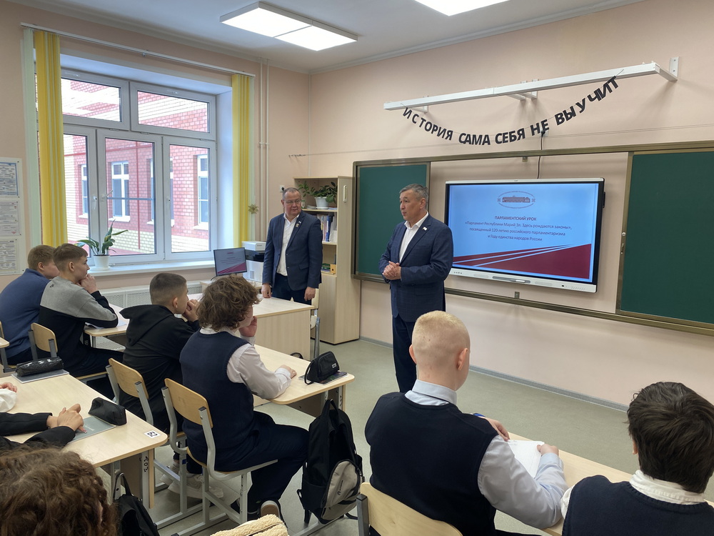 Тема урока была посвящена Дню местного самоуправления и 120-летию российского парламентаризма. Школьники узнали об истории развития законодательной власти в России: от Древней Руси и Боярской думы до современного Федерального Собрания. Гости рассказали о структуре власти в России и в Республике Марий Эл, о выборах, полномочиях депутатов и законодательном процессе. Парламентаризм, законодательная власть и закон – стали главными смысловыми опорами урока. Школьникам объяснили: парламентаризм – это система, при которой народ участвует в управлении страной через своих избранников. Законодательная власть – та самая ветвь власти, которая принимает законы. А закон – это главный инструмент, который защищает права граждан и определяет правила жизни в обществе. Без уважения к закону невозможна работа ни одного органа власти – от сельского поселения до Государственной Думы.