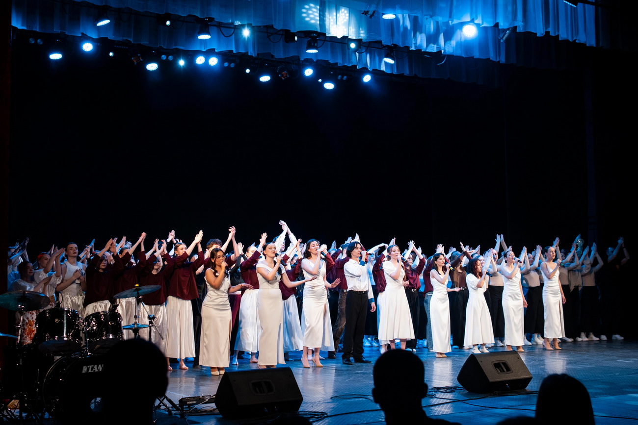 Студенты представили на сцене общее выступление под названием «Мы – громче», поведав сказку о народах одной страны. Повествование началось с древних легенд о сотворении мира и единстве народов – от коренных жителей Поволжья до гостей из солнечной Индии. Зрители увидели яркий калейдоскоп традиций и праздников, который внезапно оборвала суровая глава 1941 года, рассказанная через трогательную историю первой любви, разлучённой войной. Финалом стал диалог о современности: о гордости за великих учёных и атлетов, о мечтах молодёжи жить честно и в мире, где из множества непохожих голосов рождается единая, мощная и созидательная сила.