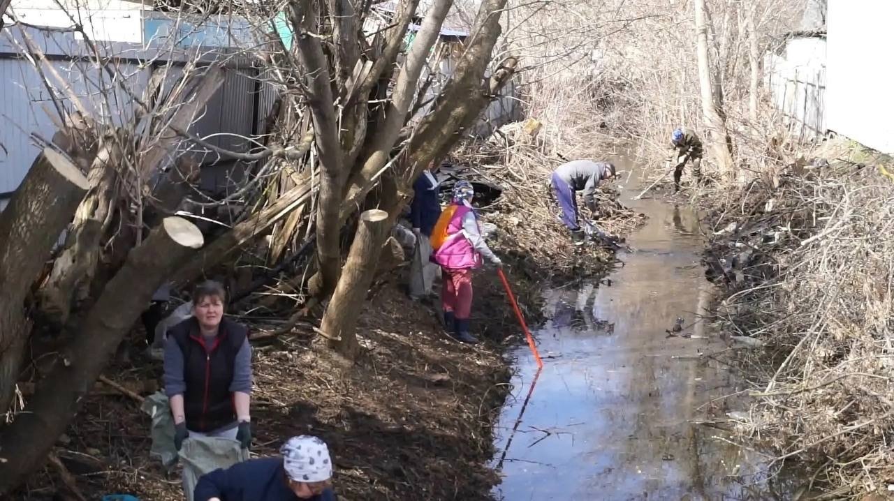 Местные жители помогают АО «Комбинат благоустройства» расчищать дренажную систему. Известно, что накануне коммунальные службы расчистили грунт на участке ливневой канализации на перекрестке улиц Шестакова и Гагарина.
