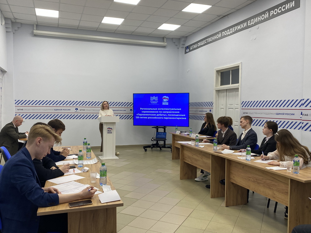 27 апреля в Штабе общественной поддержки партии «Единая Россия» прошли региональные интеллектуальные соревнования по парламентским дебатам, посвященные 120-летию российского парламентаризма.